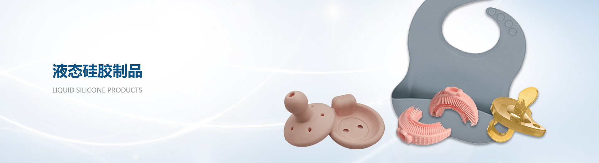 食品級液態(tài)硅膠注射成型高質(zhì)量制品,無色無毒無味,安全環(huán)保。液體硅膠具有優(yōu)異的透明度、抗撕裂強(qiáng)度、回彈性、抗黃變性、熱穩(wěn)定性、耐水、透氣性好、耐熱老化性和耐候性,同時粘度適中、便于操作,制品透明性高,可看到模具內(nèi)灌鑄材料是否有氣泡等缺陷,線收縮率≤0.1%,復(fù)制制品尺寸精密。我們的制品廣泛應(yīng)用于嬰幼兒用品、醫(yī)療用品及電子產(chǎn)品(密封件,按鍵)等等。